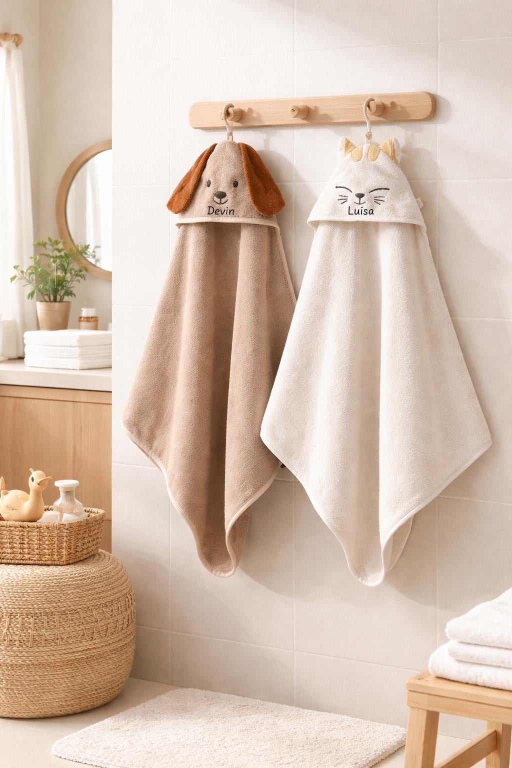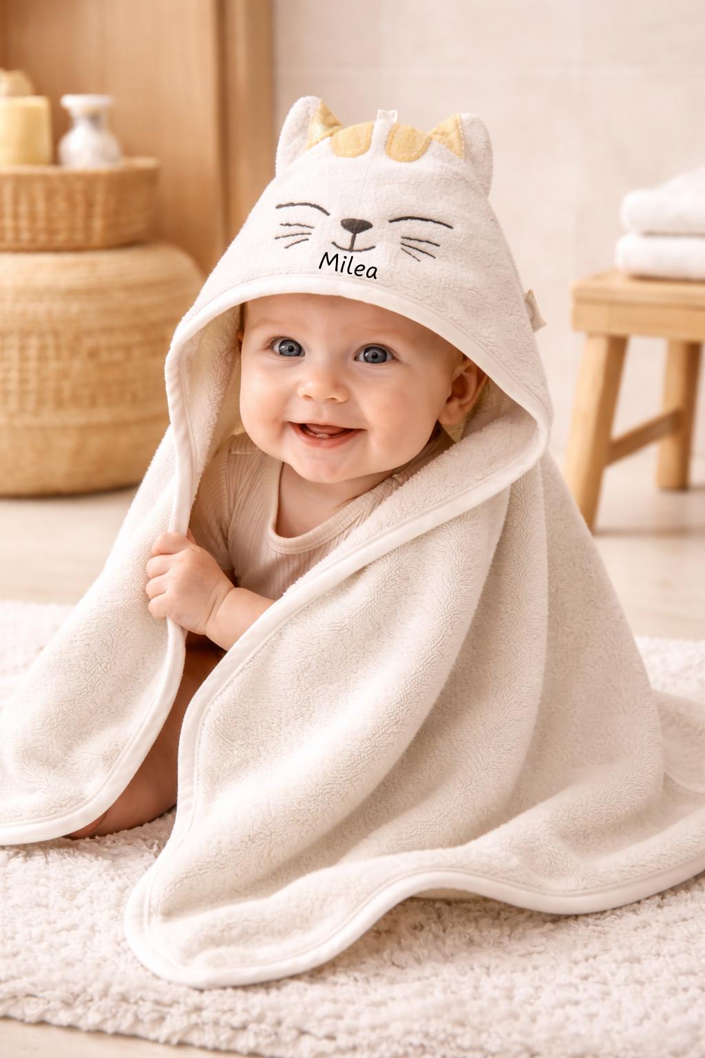 🍼 Personalisierbares Kapuzenhandtuch mit Namen – Geschenk zur Geburt & Taufe