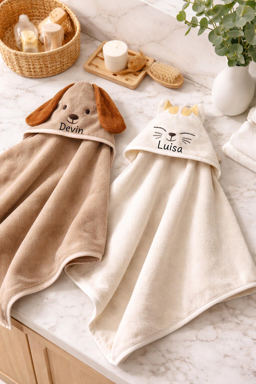 Kapuzenhandtuch mit Namen - Katze / Hund