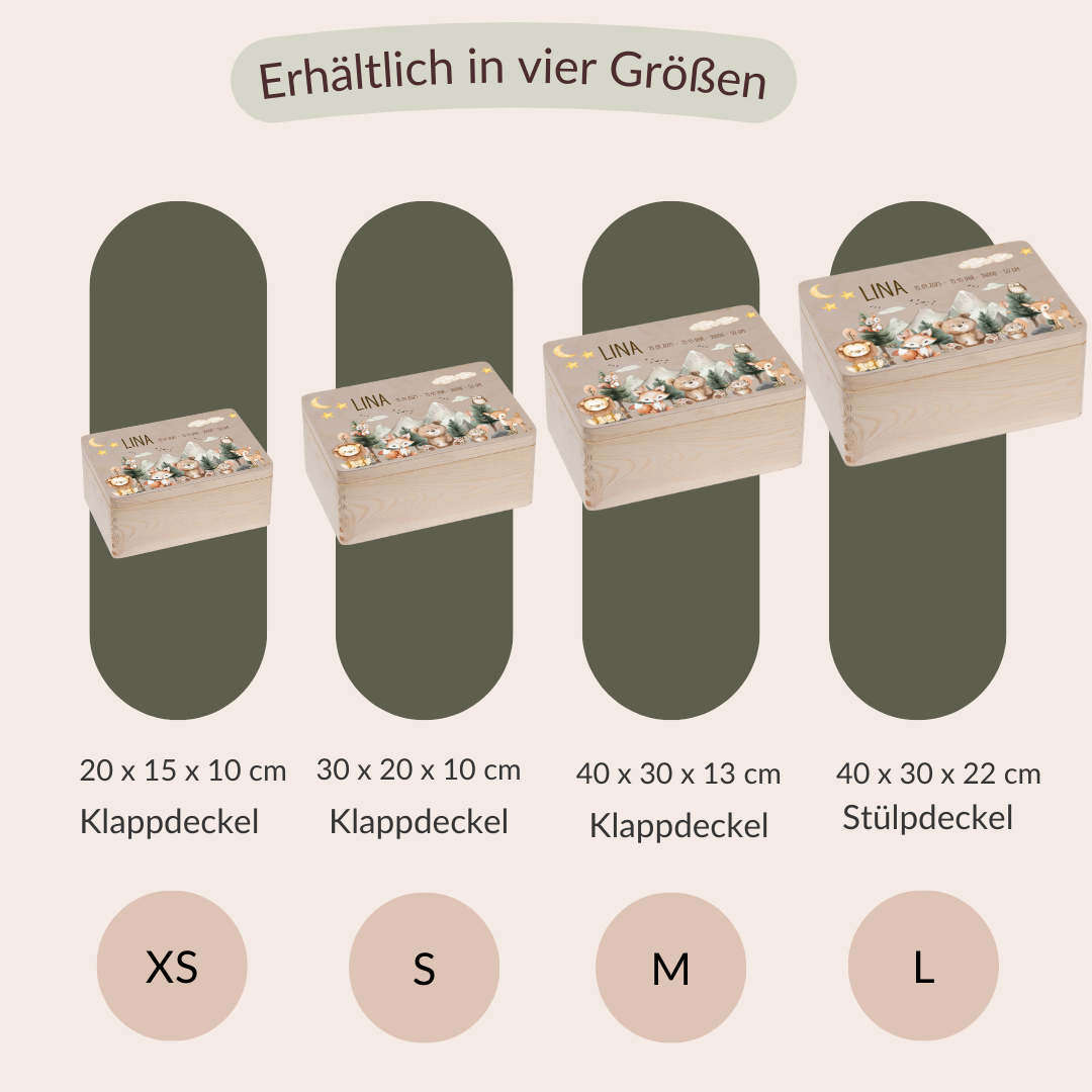 Mantieni i ricordi più preziosi di tuo figlio al sicuro con la nostra scatola dei ricordi in legno personalizzabile . Questa scatola dei ricordi dal design amorevole è il luogo perfetto per conservare momenti speciali del tuo bambino e della tua infanzia, sia come regalo di nascita , regalo di battesimo o semplicemente come regalo per i primi anni.