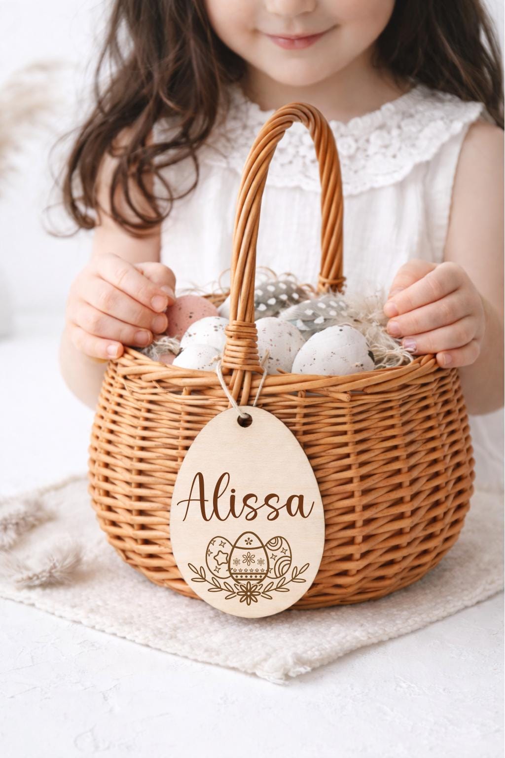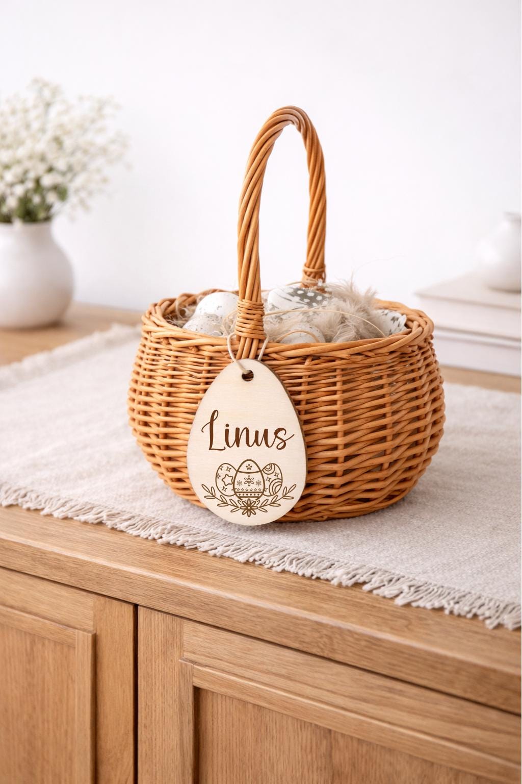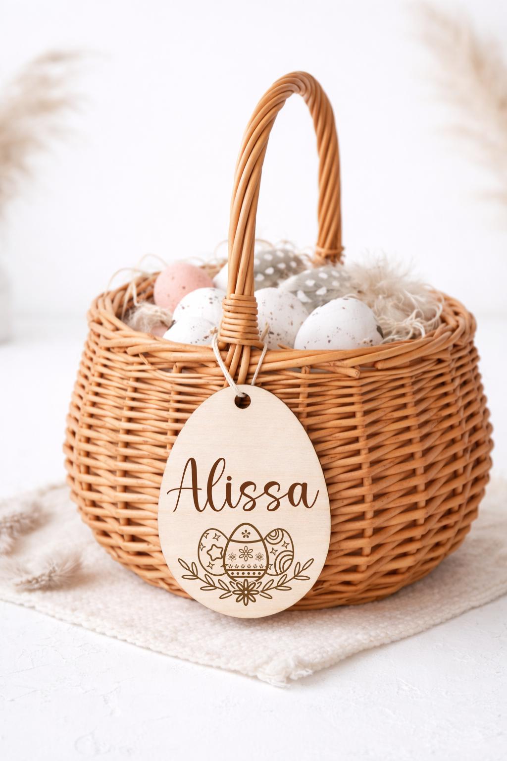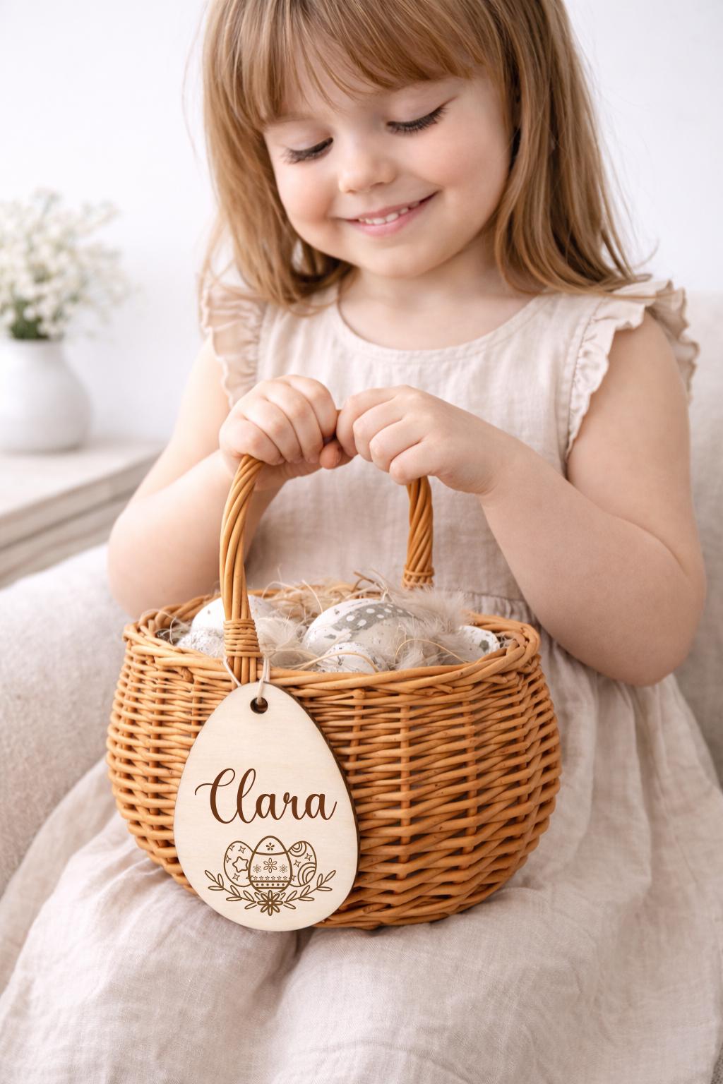 Dieses liebevoll gestaltete Osterkörbchen für Kinder ist der perfekte Begleiter für das Osterfest. Der natürliche Weidenkorb mit personalisiertem Holzanhänger macht jedes Osternest zu einem ganz besonderen Geschenk.