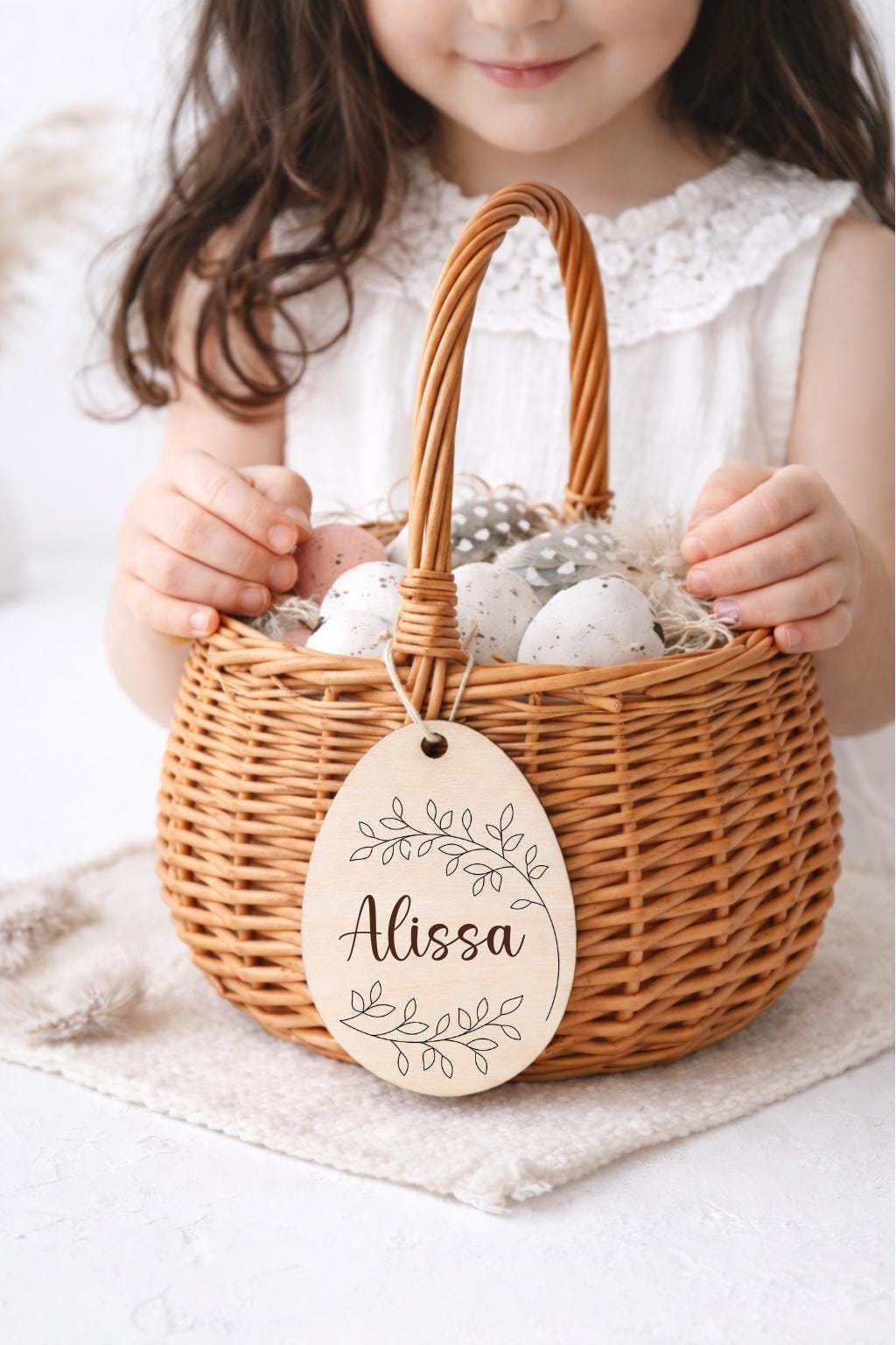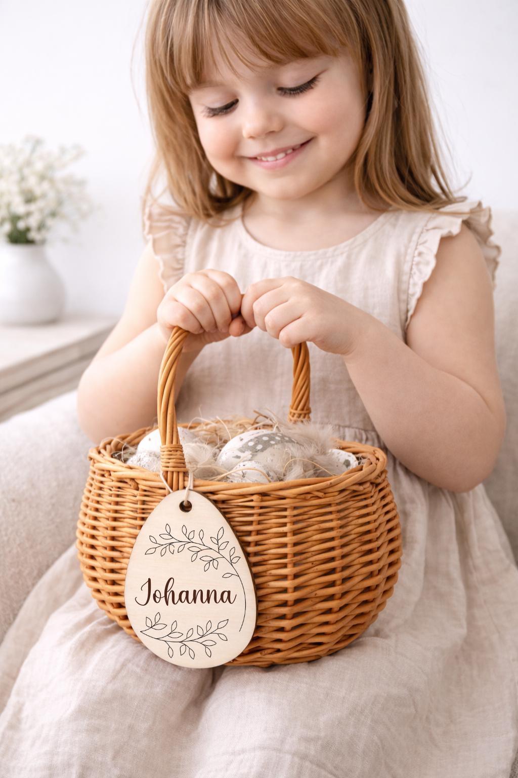 Dieses liebevoll gestaltete Osterkörbchen für Kinder ist der perfekte Begleiter für das Osterfest. Der natürliche Weidenkorb mit personalisiertem Holzanhänger macht jedes Osternest zu einem ganz besonderen Geschenk.