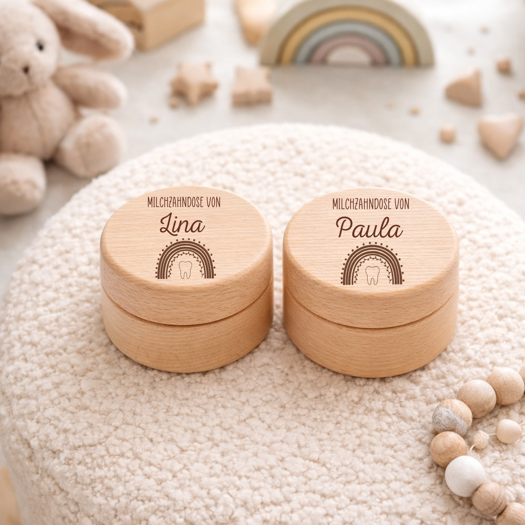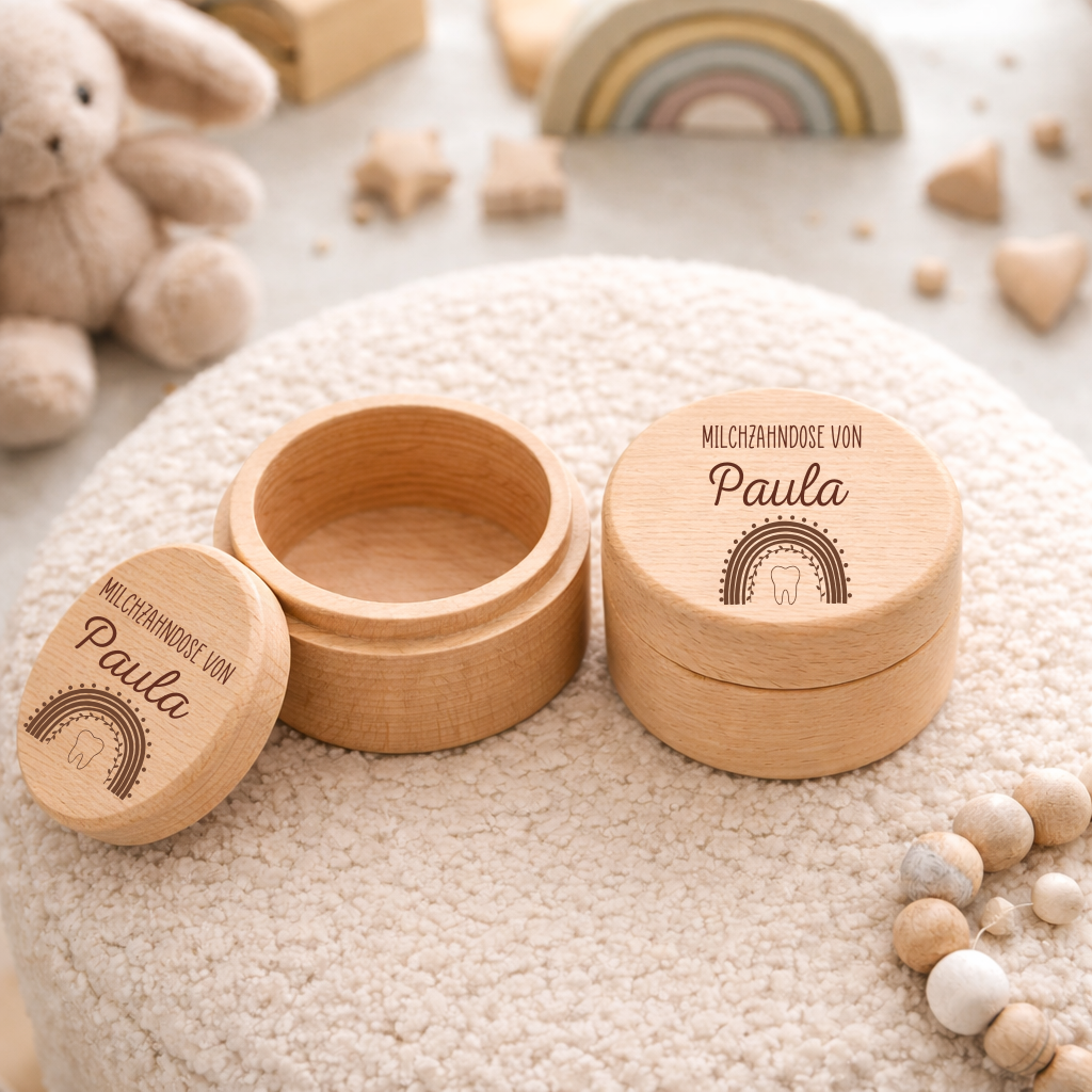 Deine ganz persönliche Milchzahndose aus Holz mit Regenbogen – Einzigartige Erinnerungen für dein Baby